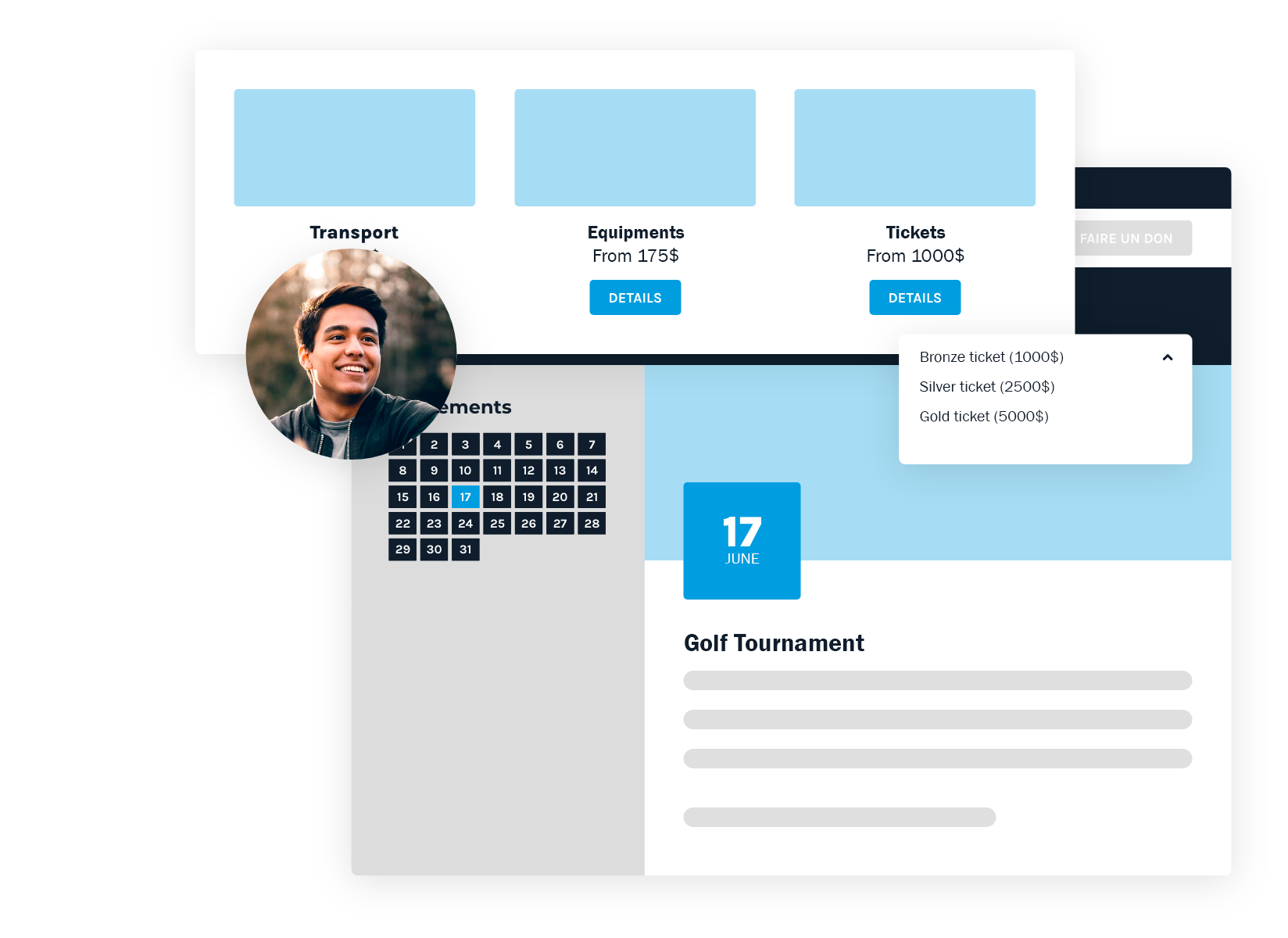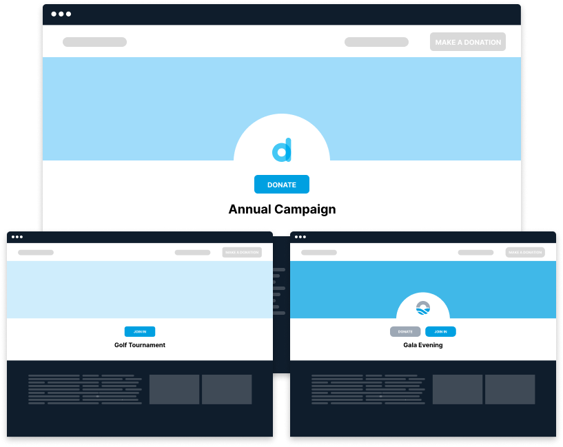 Create campaigns freely for every type of fundraising initiative: peer-to-peer (P2P), events, corporate partnerships, annual appeals, and more. No extra charges apply when multiplying your efforts.